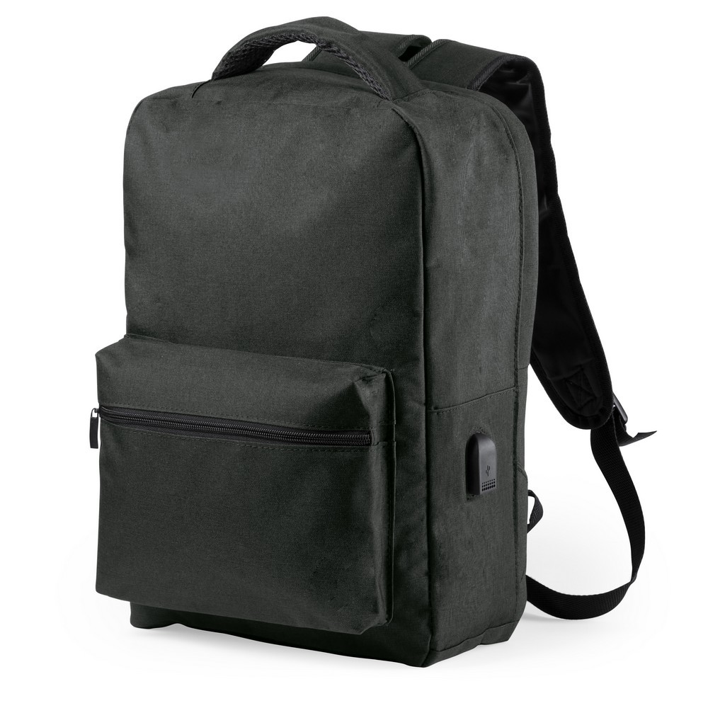 Plecak chroniący przed kieszonkowcami z przegrodą na laptopa 15" i tablet 10" oraz ochroną RFID, przegroda główna i kieszeń przednia na zamek błyskawiczny, boczna kieszeń siateczkowa, gniazdo USB do ładowania telefonów (power-bank nie dołączony), miękki tył i paski na ramię