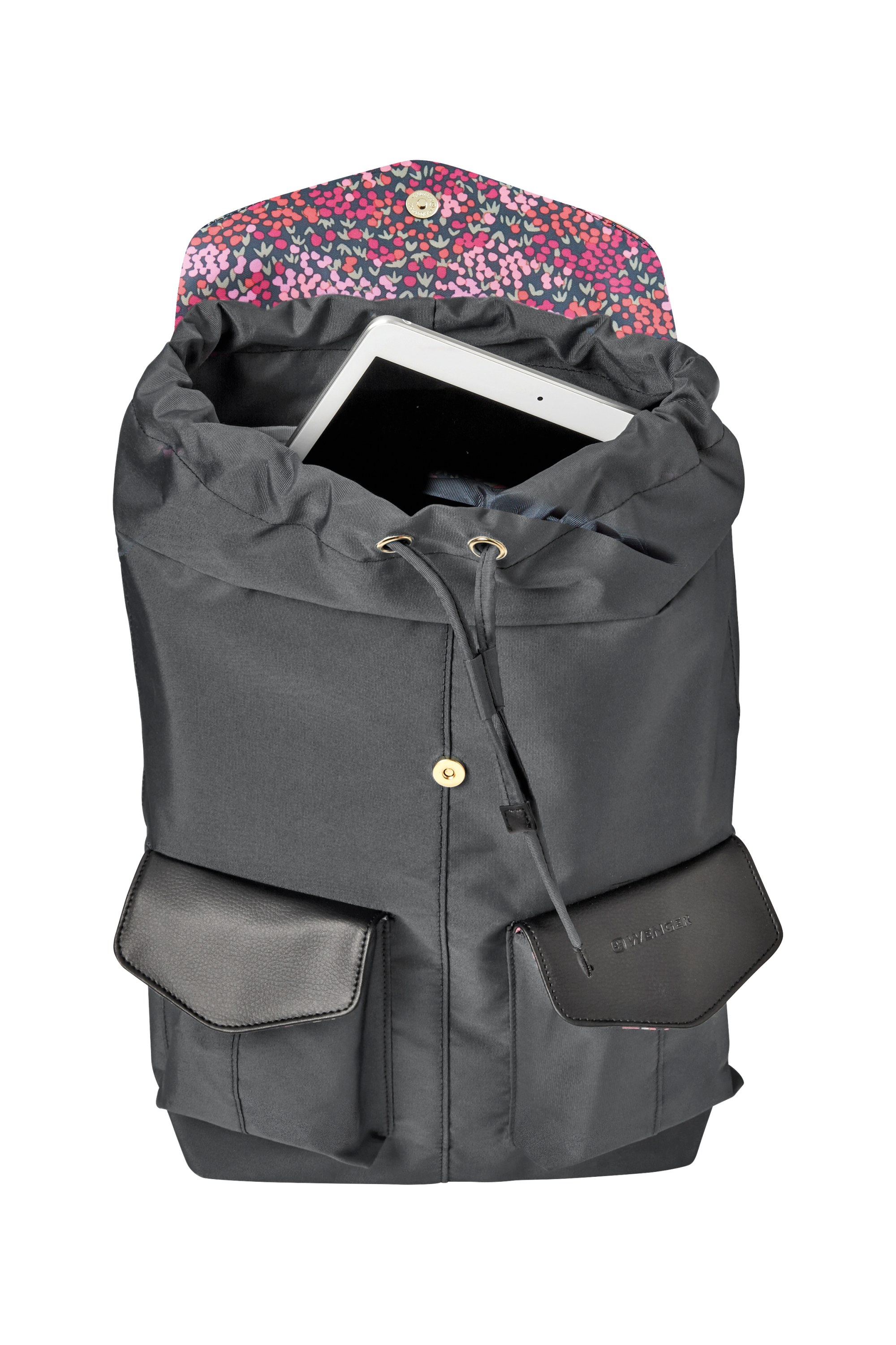 2-w-1 plecak i plecak na jedno ramię na laptop 14` / tablet 10` Wenger MarieJo czarny/motyw kwiatowy / Brązowy