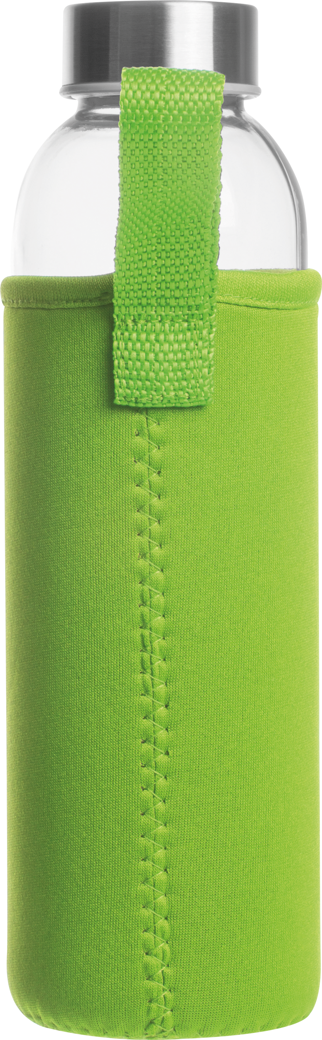 Butelka szklana o pojemności 500 ml to produkt wielorazowego użytku, który sprawdzi się zarówno w codziennym użytkowaniu, jak i w podróży. Posiada metalową zakrętkę, która zapewnia szczelne zamknięcie i chroni napój przed wyciekaniem napoju. Dodatkowo wyposażona jest w etui z neoprenu, które nie tylko zabezpiecza butelkę przed uszkodzeniami, ale także działa jako izolacja termiczna, utrzymując napój w odpowiedniej temperaturze na nieco dłużej. Sama butelka odpowiednia jest do przechowywania cieczy o temperaturze do 80 stopni Celsjusza – nada się więc do napojów zimnych i ciepłych. Etui dodaje butelce eleganckiego wyglądu, a także może stanowić doskonałe miejsce na umieszczenie logo Twojej firmy. Dzięki etui z neoprenu, możesz bez obaw umieścić ją w plecaku czy torbie, wiedząc, że jest odpowiednio zabezpieczona. Materiał szkła sodowo-wapniowego zapewnia bezpieczeństwo i higienę, jednakże ze względu na swoją specyfikację nie jest odpowiedni do mycia w zmywarce.