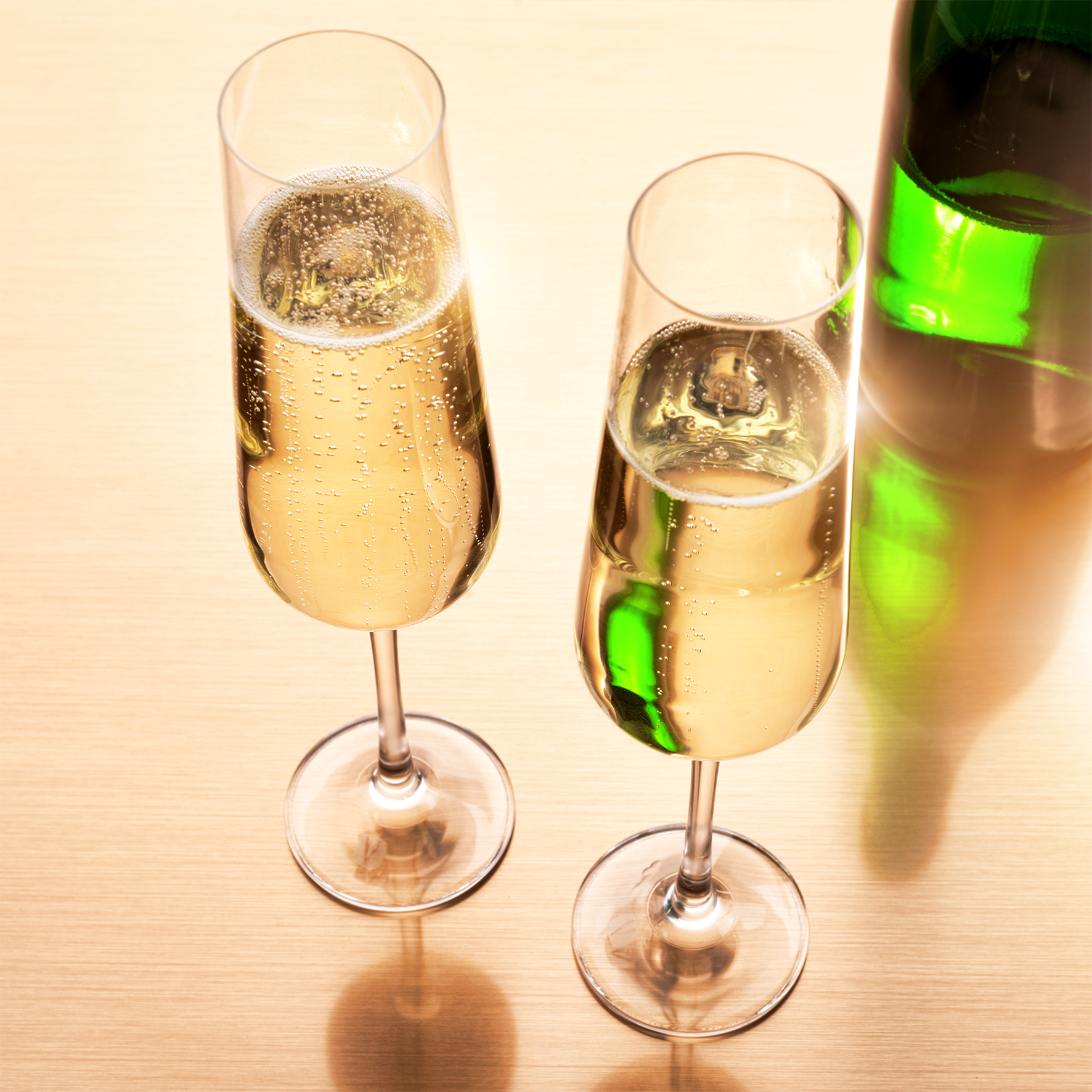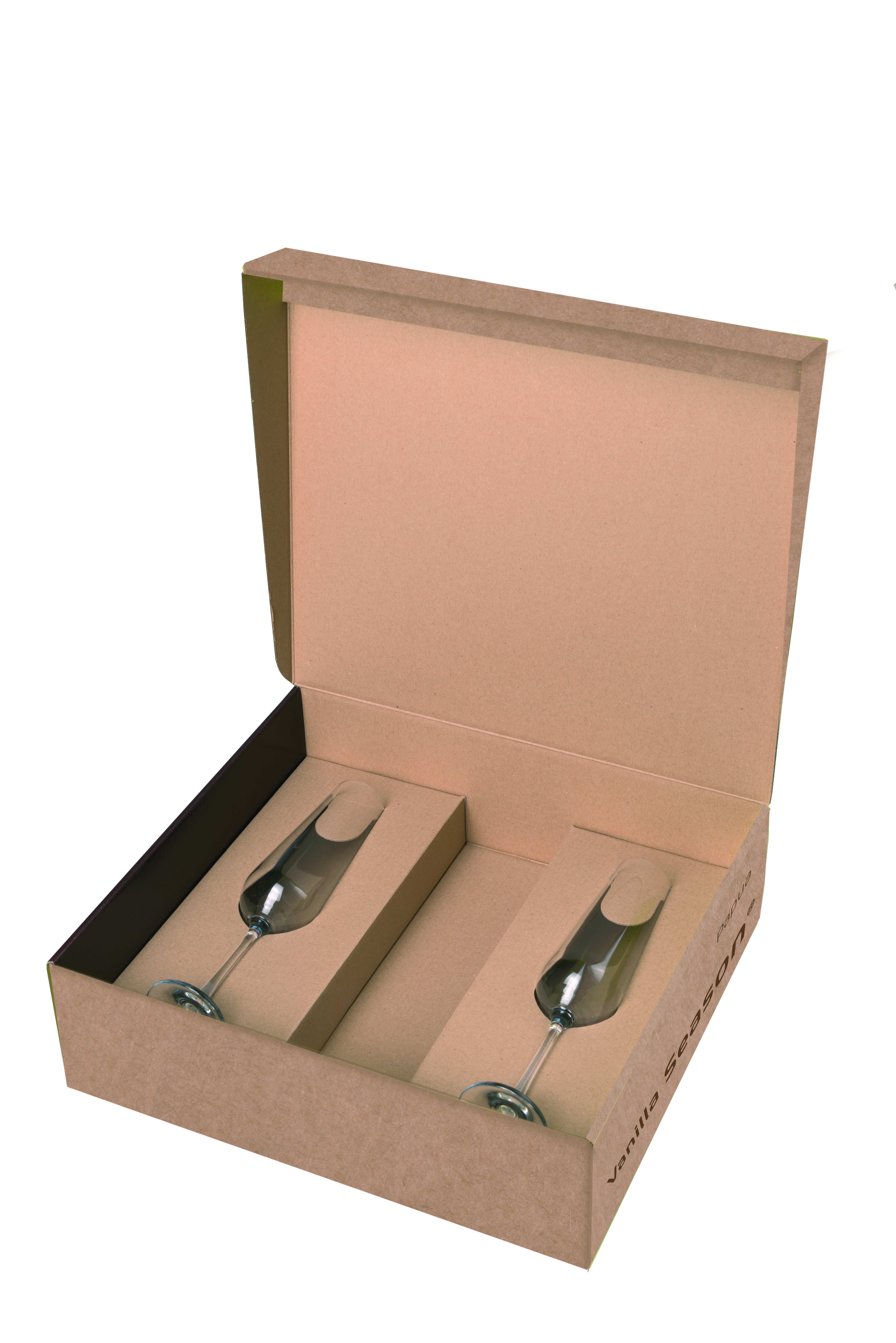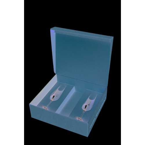 Zestaw 2 kieliszków do szampana (200 ml) lub wina musującego z wysokiej jakości szkła. W pudeku pomiędzy kieliszkami można umieścić butelkę. Pakowany w pudełko Vanilla Season.