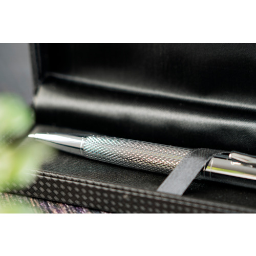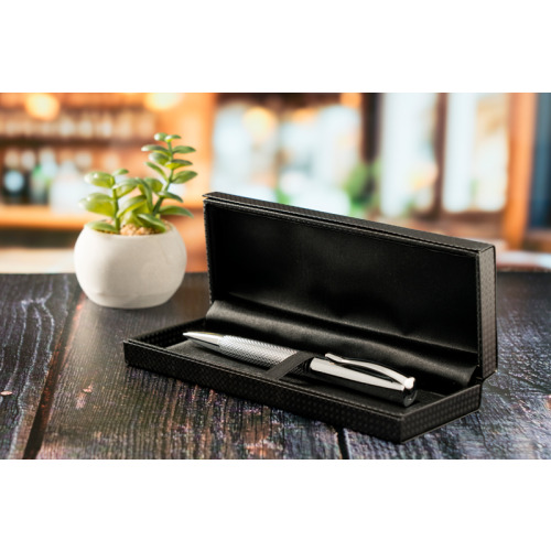 Długopis metalowy CHESTER to elegancki i funkcjonalny przyrząd piśmienniczy, który łączy wysoką jakość wykonania z nowoczesnym designem. Jego solidna metalowa konstrukcja zapewnia trwałość i wygodę użytkowania, a jednocześnie nadaje mu profesjonalny wygląd, który doskonale sprawdzi się w każdej sytuacji, zarówno podczas ważnych spotkań biznesowych, jak i w codziennym użytkowaniu.Wyposażony w niebieski wkład, zapewnia płynne pisanie i wyraźny ślad na papierze, co czyni go idealnym narzędziem do pracy czy nauki. Wkład jest wymienny, co zwiększa trwałość produktu, a dzięki niemu długopis może służyć przez długi czas. Korpus długopisu ma subtelną, ale elegancką formę, a zastosowane wykończenie metaliczne nadaje mu nowoczesnego i profesjonalnego charakteru.Długopis zapakowany jest w eleganckie etui, które nie tylko zapewnia ochronę przed uszkodzeniami, ale także stanowi doskonałą opcję na prezent. Dzięki swojej wysokiej jakości i estetycznemu wykonaniu, będzie odpowiednim wyborem na upominek dla współpracownika, klienta lub bliskiej osoby.CHESTER to długopis, który łączy elegancję z funkcjonalnością, stając się niezawodnym towarzyszem w pracy, szkole i podczas codziennych obowiązków. Dzięki niemu każde pisanie staje się przyjemnością.