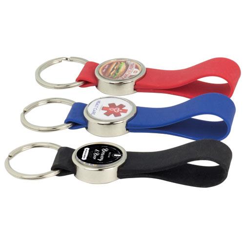Brelok do kluczy z silikonowym paskiem. Istnieje możliwość wykonania grawerunku.