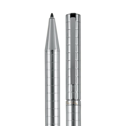 Nowoczesny długopis metalowy z oryginalnym, grawerowanym korpusem i mechanizmem obrotowym. Wyposażony w wysokiej jakości niebieski wkład z końcówką 1 mm. W zestawie z wkładem zapasowym piszącym na czarno. Zapakowany w eleganckie pudełko prezentowe z certyfikatem autentyczności Pierre Cardin.