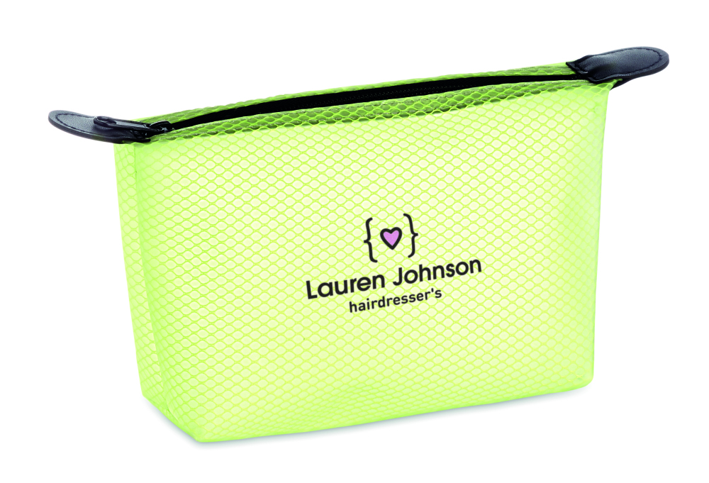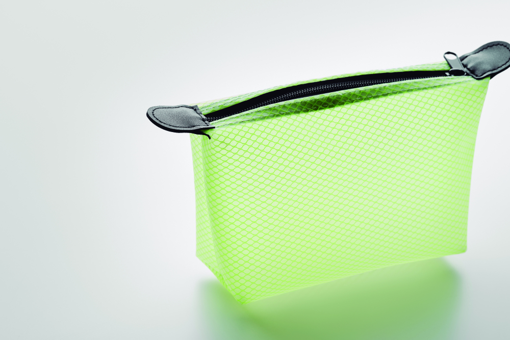 Kosmetyczka z przezroczystej siatki EVA z czarnym zamkiem.