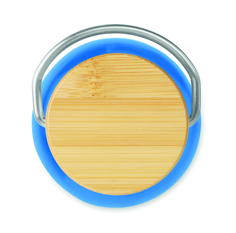 Butelka z Tritanu 800 ml z dnem ze stali nierdzewnej i pokrywką z bambusowym wykończeniem. Bambus jest materiałem naturalnym, kolor poszczególnych produktów może się różnić.