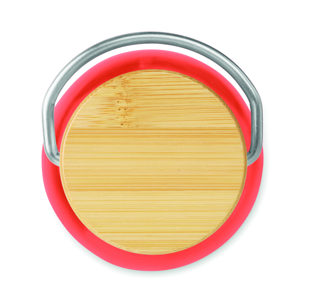Butelka z Tritanu 800 ml z dnem ze stali nierdzewnej i pokrywką z bambusowym wykończeniem. Bambus jest materiałem naturalnym, kolor poszczególnych produktów może się różnić.