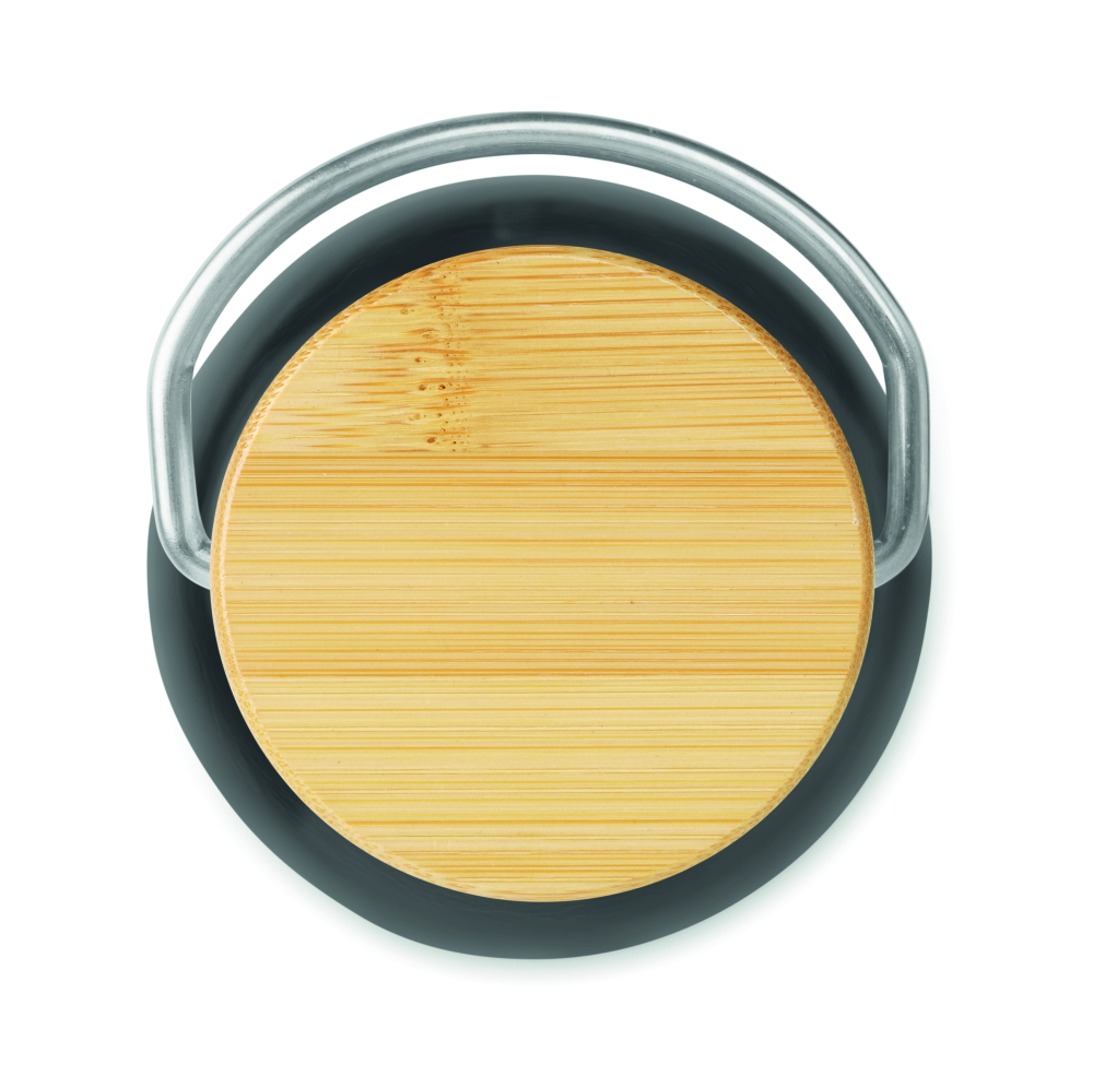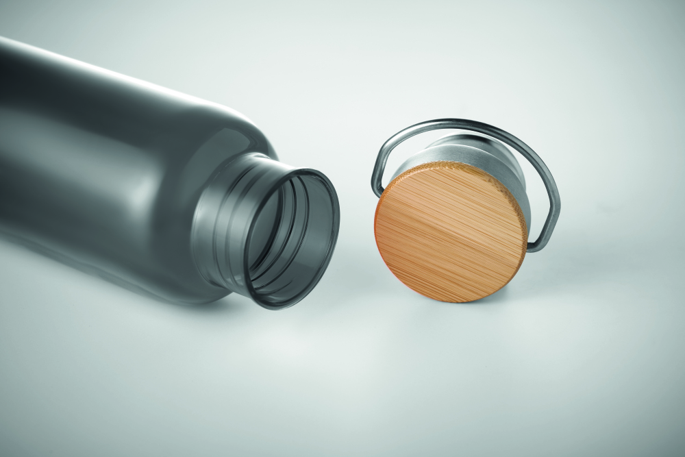 Butelka z Tritanu 800 ml z dnem ze stali nierdzewnej i pokrywką z bambusowym wykończeniem. Bambus jest materiałem naturalnym, kolor poszczególnych produktów może się różnić.