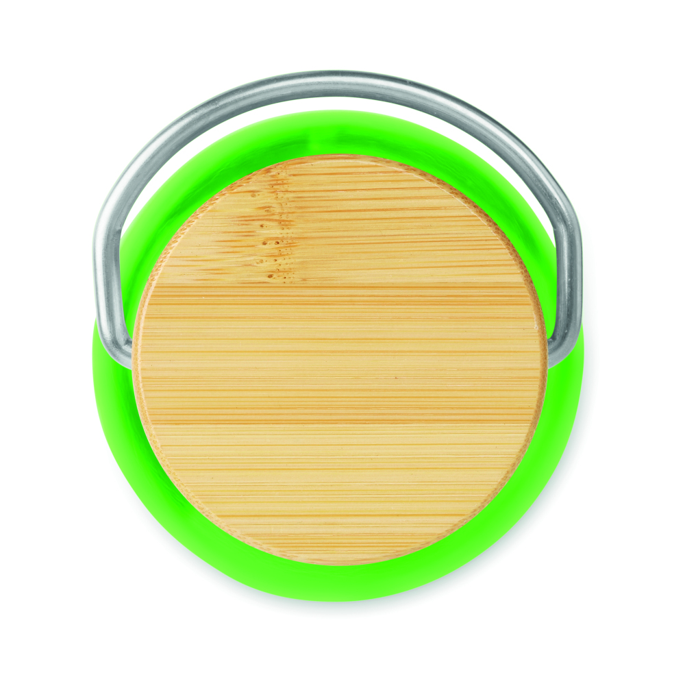 Butelka z Tritanu 800 ml z dnem ze stali nierdzewnej i pokrywką z bambusowym wykończeniem. Bambus jest materiałem naturalnym, kolor poszczególnych produktów może się różnić.