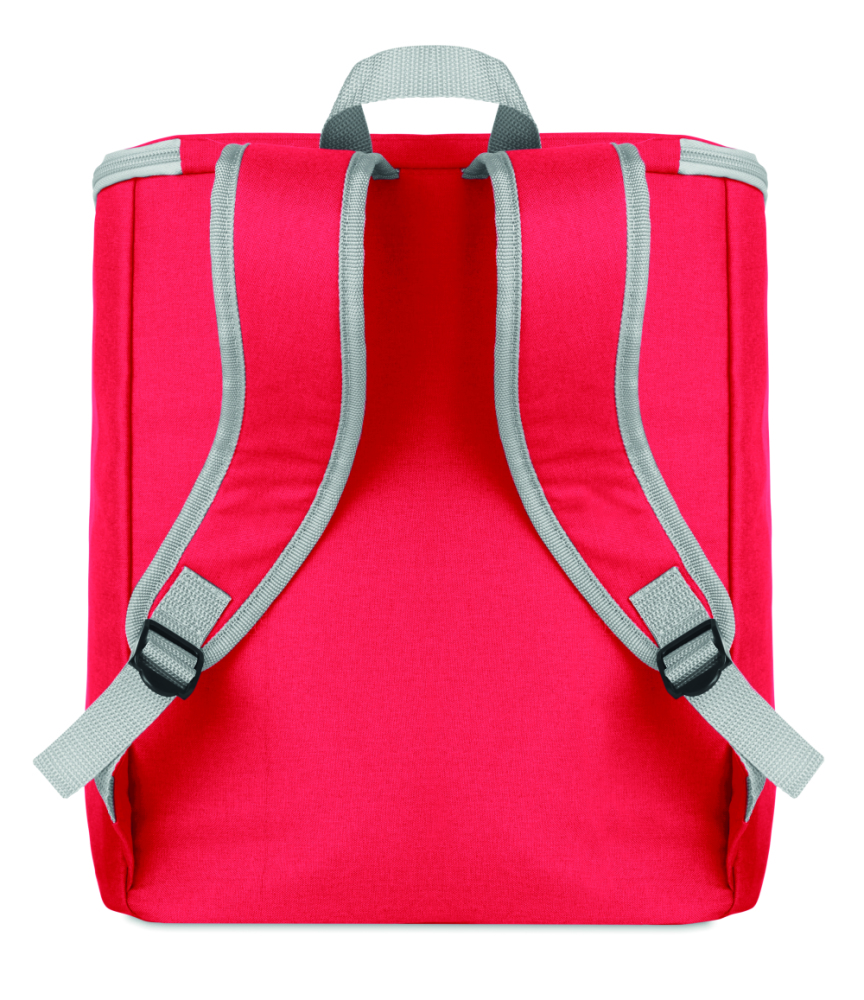 Izotermiczna torba-plecak z poliwęglanu 300D / PU, z przednią kieszenią. Posiada 2 mm wewnętrzną folię aluminiową.