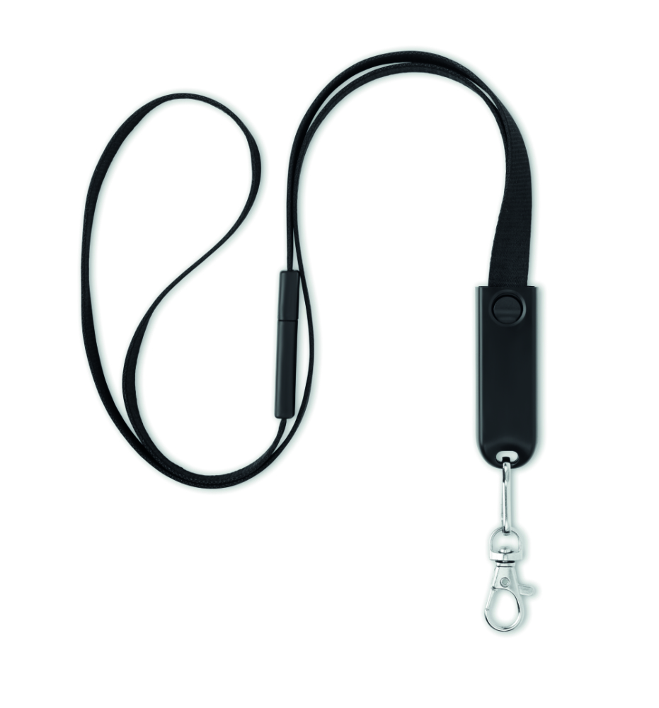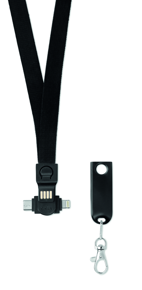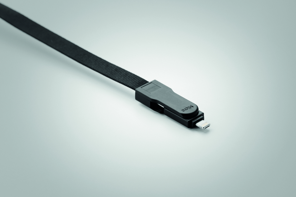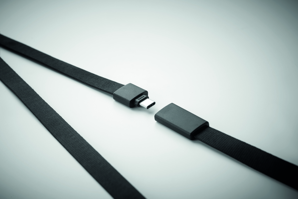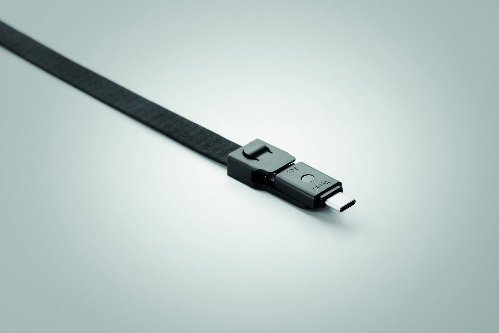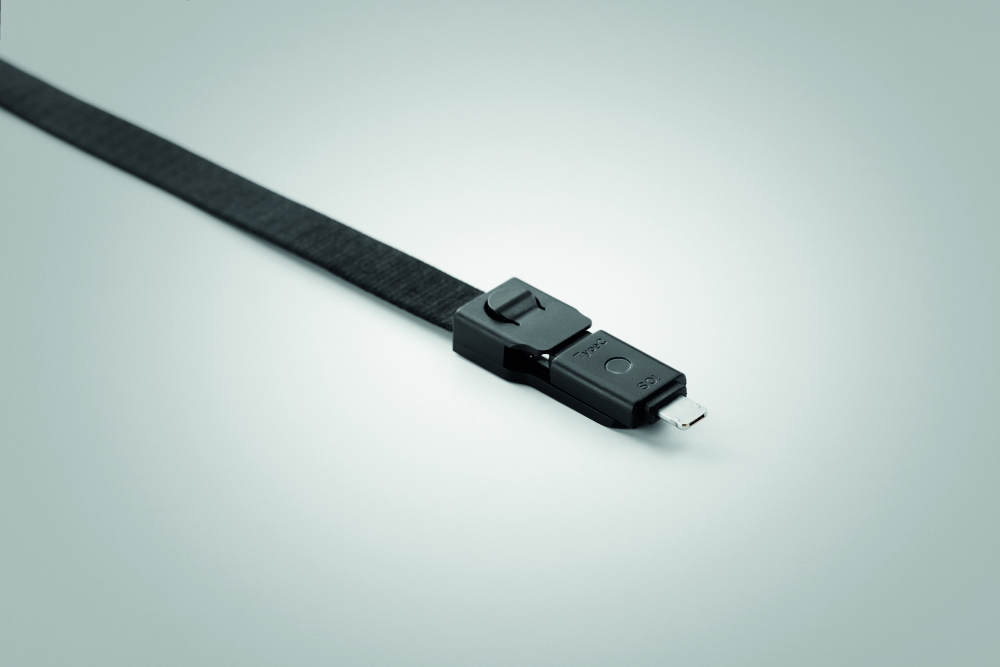Jednak ta smycz nie jest taka standardowa, ponieważ posiada kabel ładujący USB-A, Micro-B (wtyczka 2 w 1) i typ C.