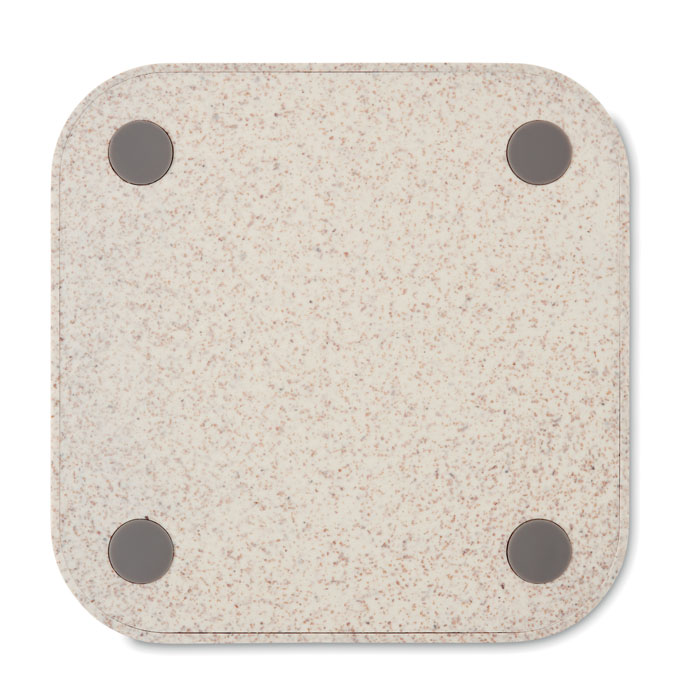 Bezprzewodowa podkładka z funkcją ładowarki ze słomy pszenicy (35%) i ABS (65%) z 2-portowym hubem USB 2.0. Wyjście DC5V/1,0A. Kompatybilna z najnowszym androidem, iPhone® 8, X i nowsze.