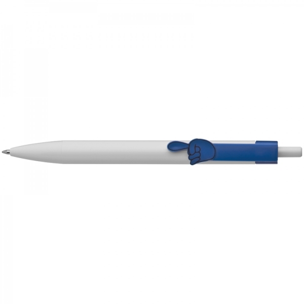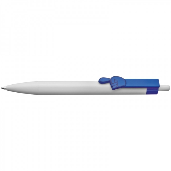 Długopis plastikowy z rączką 2D (wskazującą palcem). Długopis dostępny w szerokiej gamie kolorystycznej. Posiada wkład piszący na niebiesko.