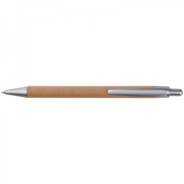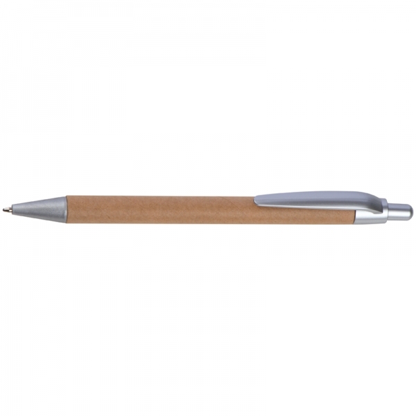 Długopis tekturowy BLACKPOOL to świetna propozycja dla osób, które szukają praktycznych rozwiązań biurowych w duchu eko. Prosty, ale stylowy - idealnie sprawdzi się w codziennym użytkowaniu zarówno w biurze, jak i w domu czy szkole. Korpus długopisu został wykonany z kartonu pochodzącego z recyklingu, co czyni go przyjaznym dla środowiska i świadomym wyborem. Jego lekka konstrukcja w połączeniu z srebrnymi elementami ozdobnymi nadaje mu elegancki, nowoczesny wygląd, mimo jego ekologicznej prostoty. Długopis jest wyposażony w niebieski wkład oraz mechanizm automatyczny, który ułatwia codzienne notowanie. Nie trzeba szukać skuwki - wystarczy klik i gotowe.