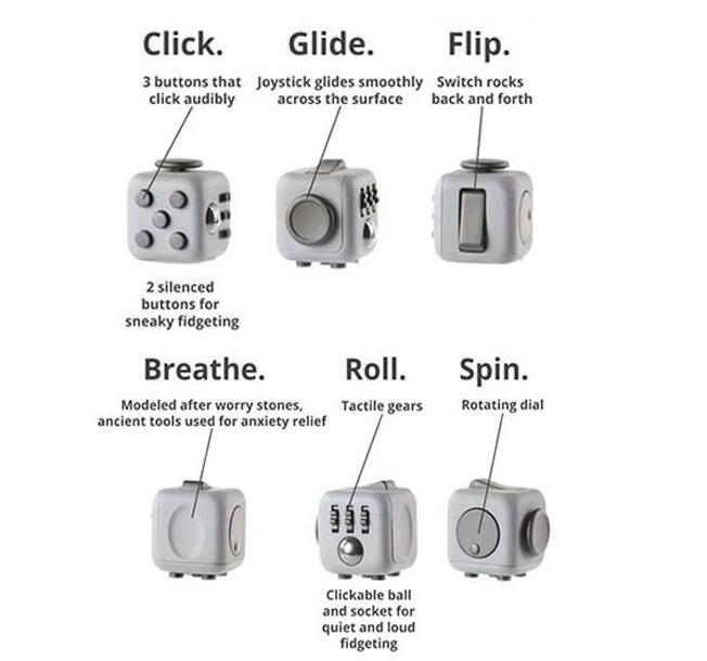 FIDGET CUBE to idealny gadżet dla każdego. Odstersowuje, pozwala zająć czymś ręce, zastepuje długopisy, ołówki czy spinacze biurowe. Kostka posiada wiele rożnych przycisków i gałek, które możemy: przekręcać, obracać, klikać, pocierać, rolować.