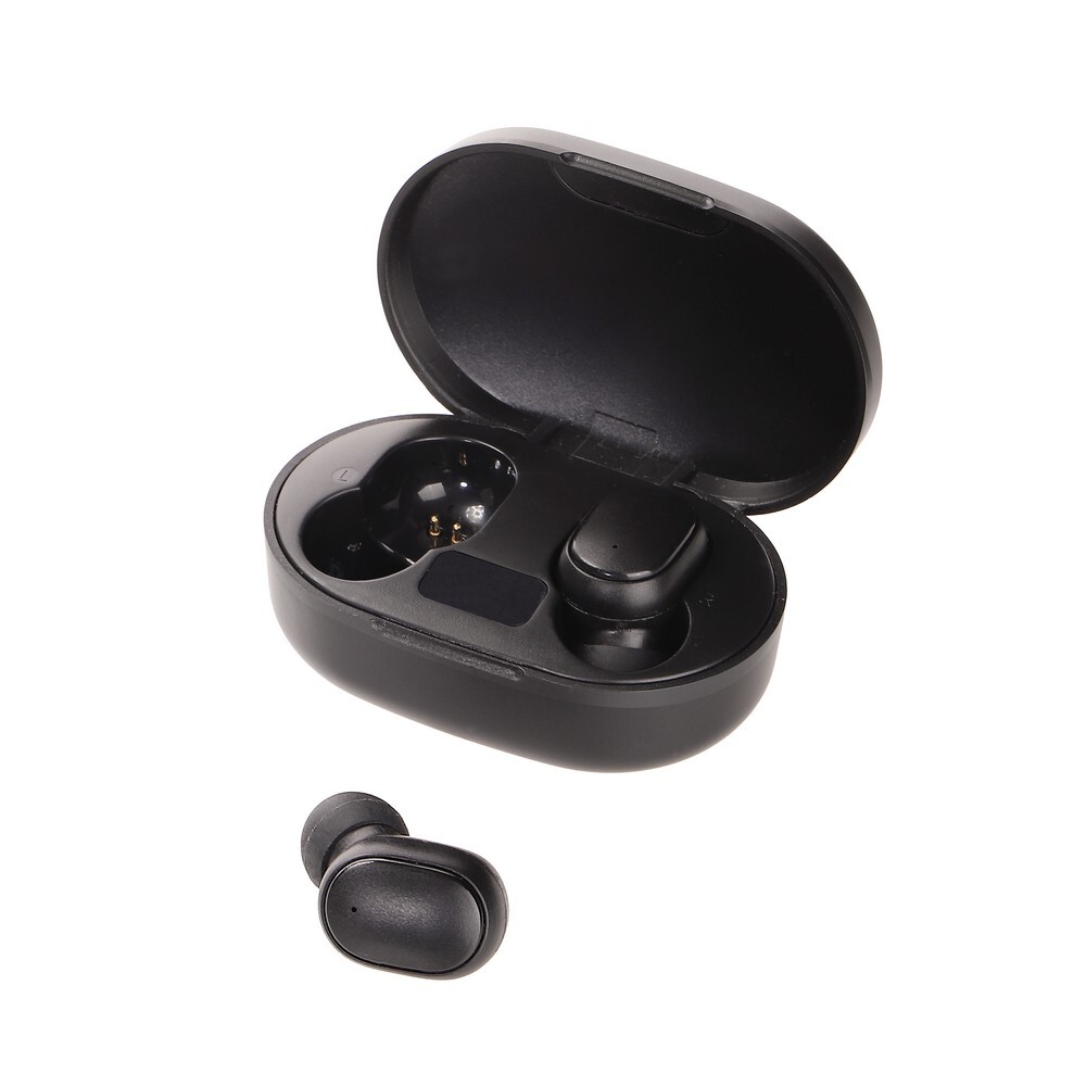 Słuchawki bezprzewodowe 2x40 mAh w etui ze stacją ładującą słuchawki 200 mAh, douszne, BT 5.0, funkcja odbierania połączeń i odtwarzania muzyki, ładowane przez USB, czas pracy: 2h, zasięg do 10 m, kabel micro USB w komplecie