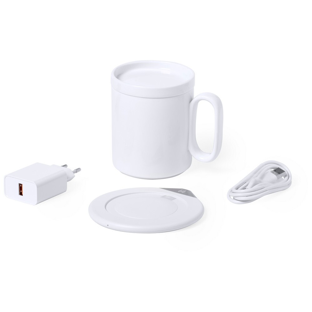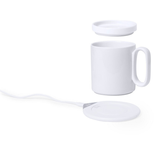 Kubek ceramiczny 350 ml, ładowarka bezprzewodowa 15W, podgrzewacz do kubka / Biały