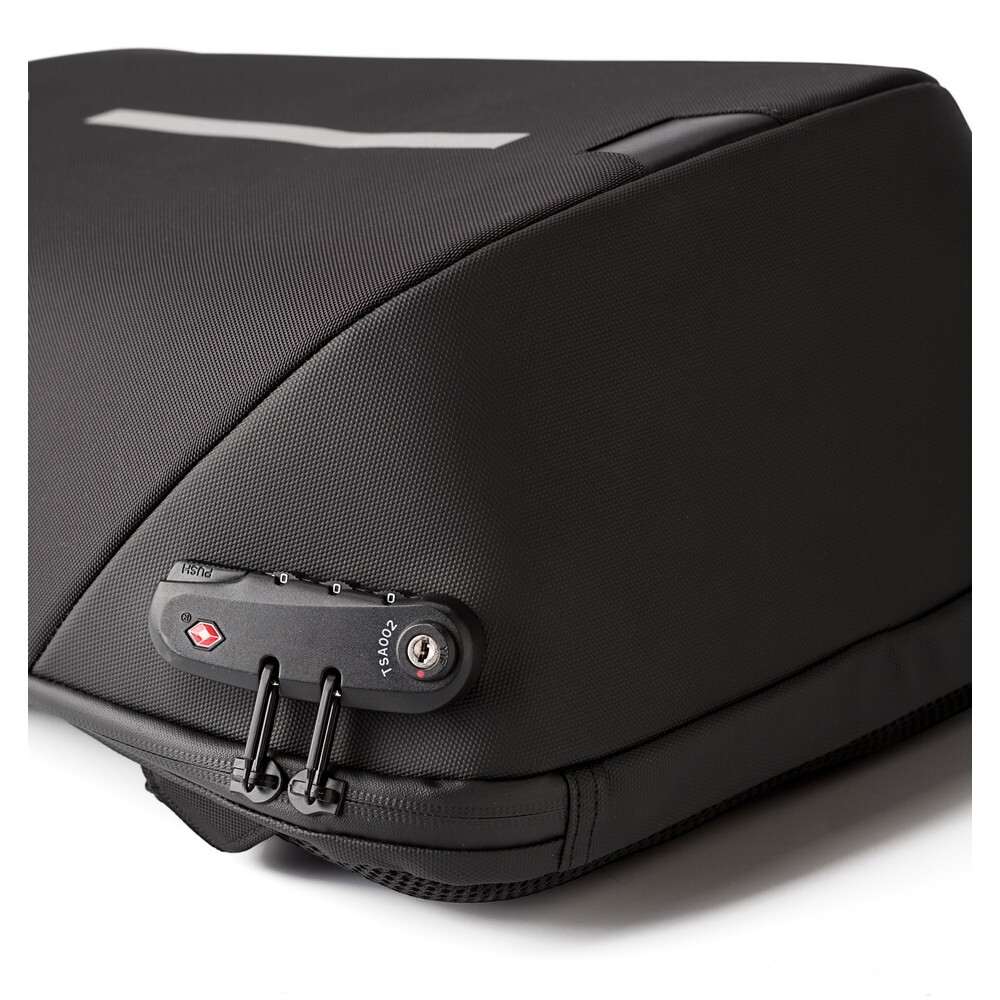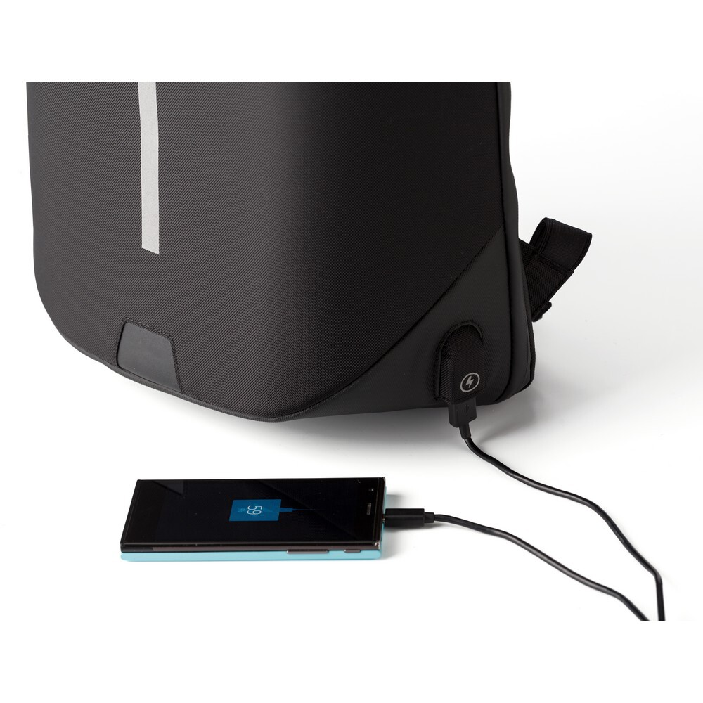Plecak na laptopa 15", przegroda główna zamykana na zamek, suwaki blokowane zamkiem szyfrowym (3 cyfry), wiele kieszeni wewnątrz, gniazdo USB z kablem do ładowania telefonów (power-bank nie dołączony), regulowane paski na ramię