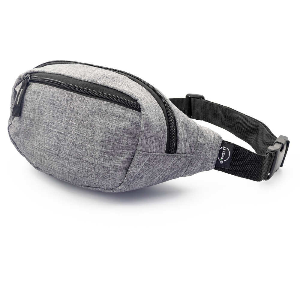 Saszetka zapinana w pasie B'RIGHT, wykonana z rPET, przegroda główna oraz przednia na zamek błyskawiczny, szeroki i regulowany pas biodrowy, solidna klamra