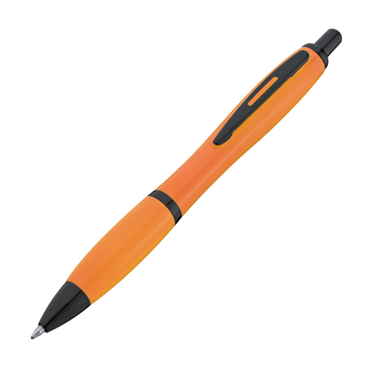 Wyróżnij się dzięki temu nietypowemu plastikowemu długopisowi. Połączenie kolorowej obudowy z czarnymi dodatkami oraz metalowy klip sprawiają, że ten długopis pomoże się wyróżniać. Wkład pisze na niebiesko. Twoje logo możemy nadrukować na korpusie pod klipem.