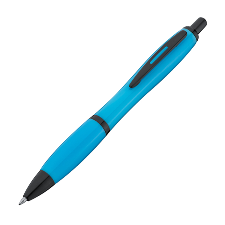 Wyróżnij się dzięki temu nietypowemu plastikowemu długopisowi. Połączenie kolorowej obudowy z czarnymi dodatkami oraz metalowy klip sprawiają, że ten długopis pomoże się wyróżniać. Wkład pisze na niebiesko. Twoje logo możemy nadrukować na korpusie pod klipem.