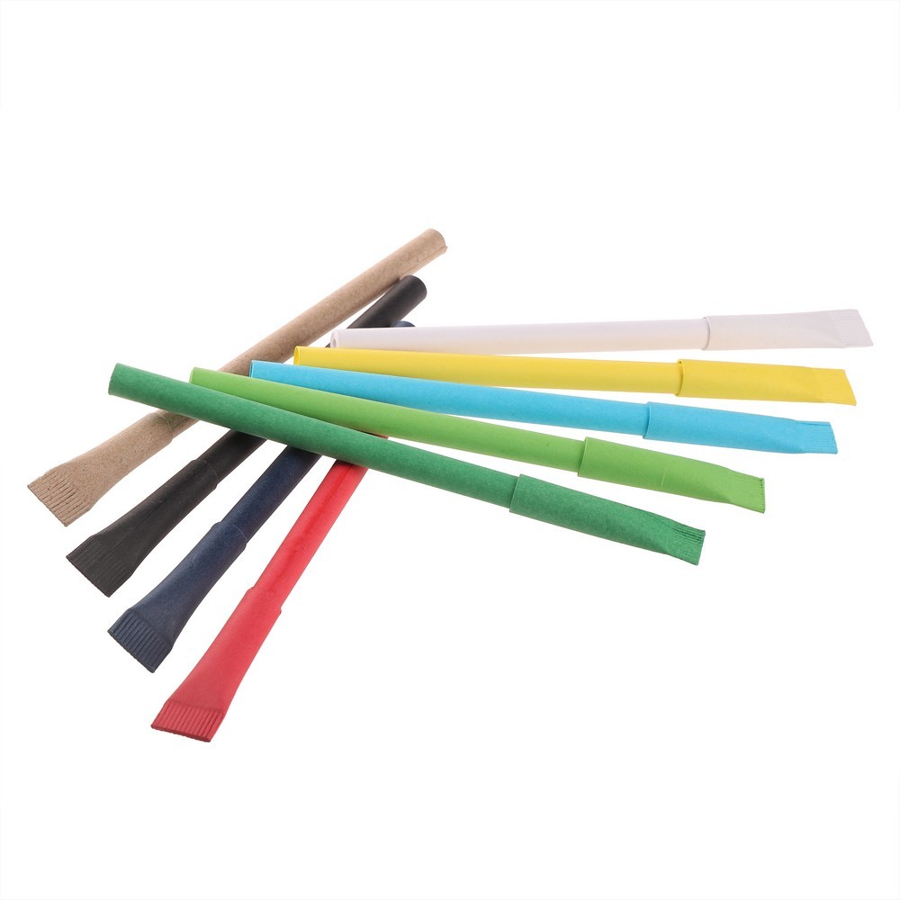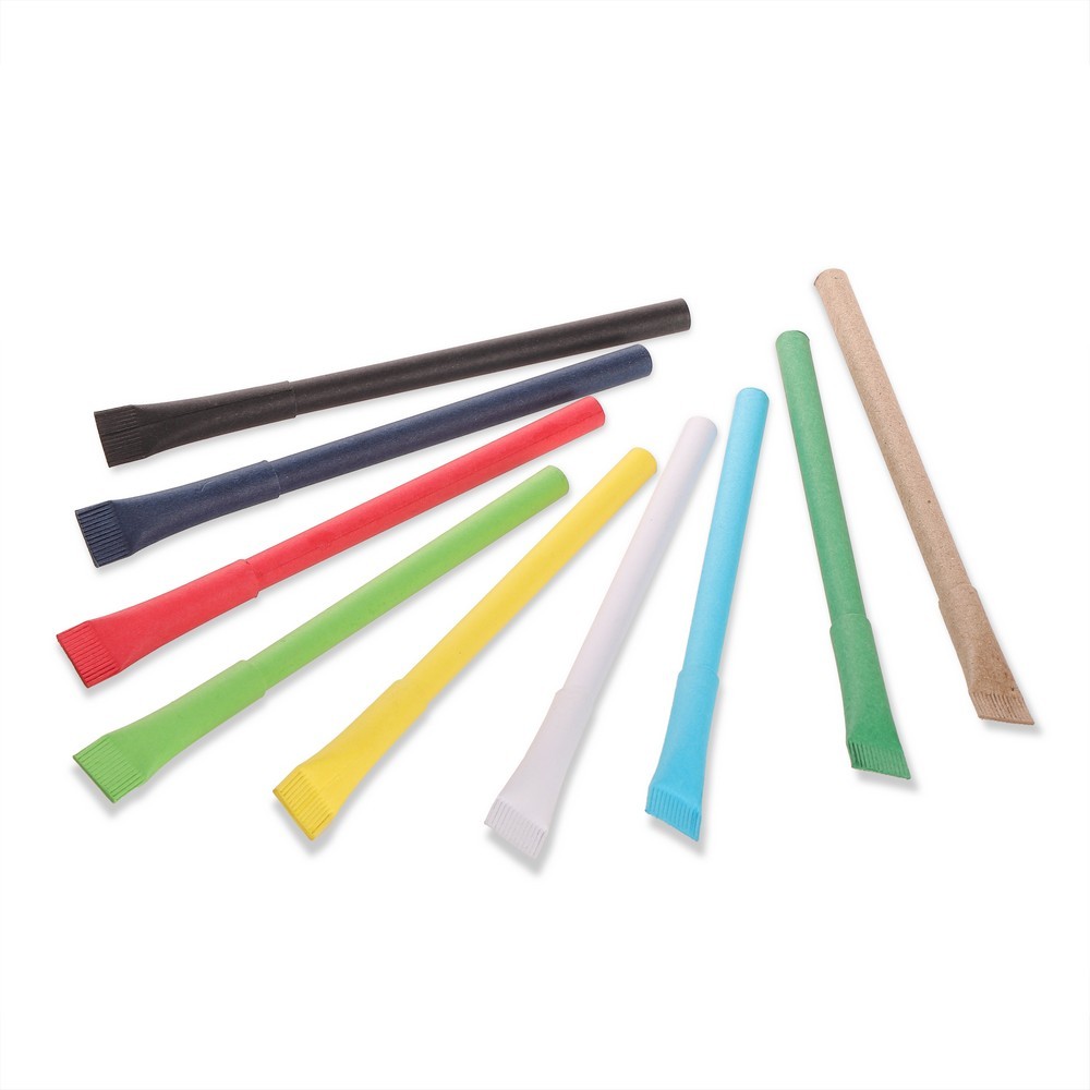 Długopis wykonany ze zrolowanego papieru, dopasowana kolorystycznie zatyczka, cięte zakończenie