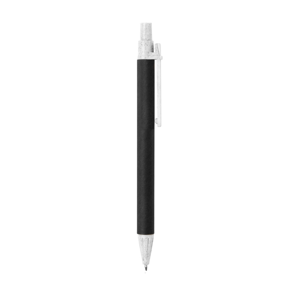 Długopis z kartonu z recyklingu, elementy ze słomy pszenicznej / Czarny