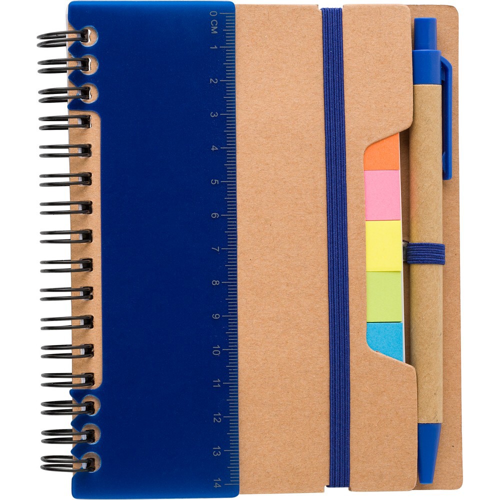 Zestaw do notatek, notatnik (60 kartek z papieru z recyklingu w linie), długopis, linijka i 125 karteczek samoprzylepnych (25 szt. z każdego koloru), spiralne bindowanie