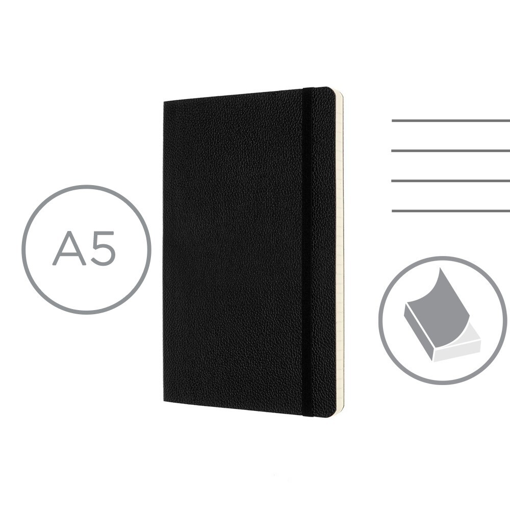 Notatnik skórzany, duży (ok. A5, large) MOLESKINE, 176 stron w linie, miękka okładka, kieszeń wewnętrzna, zakładka i elastyczna opaska do zamykania, z pudełkiem podarunkowym w komplecie