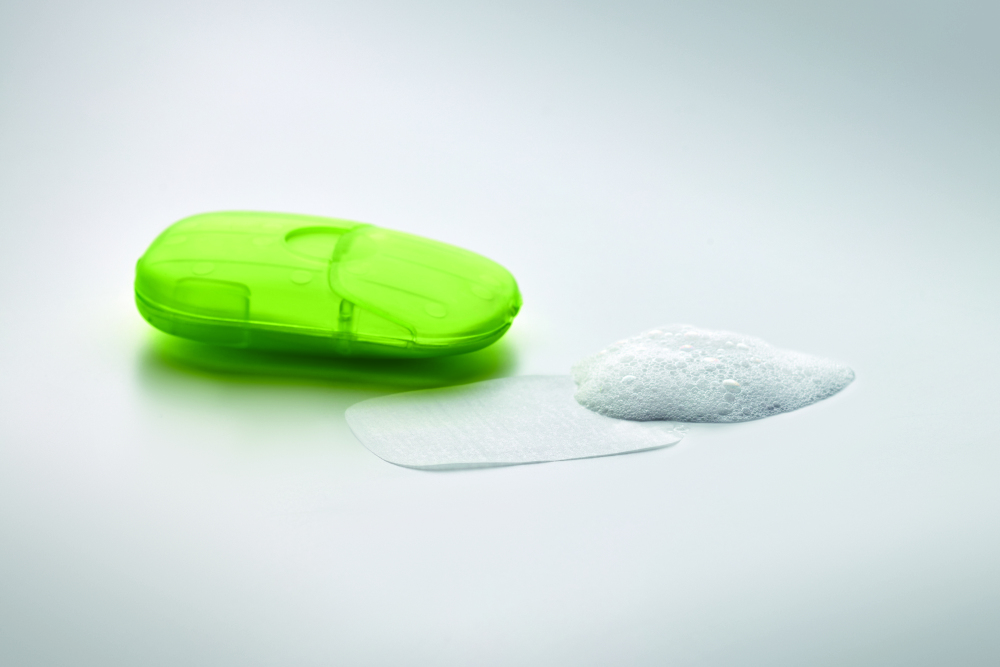 Mydło w listkach 20szt. w etui PP. Aby użyć, dodaj wodę i umyj ręce.
