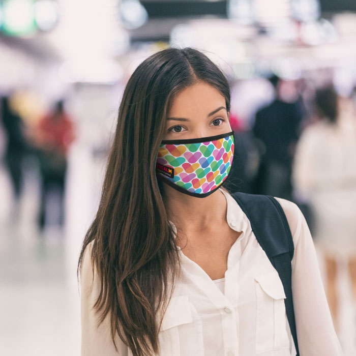 Poliestrowa sublimacyjna maseczka na twarz - 3 warstwowa. Dwie warstwy z poliestru i jedna wewnętrzna warstwa z bawełny.