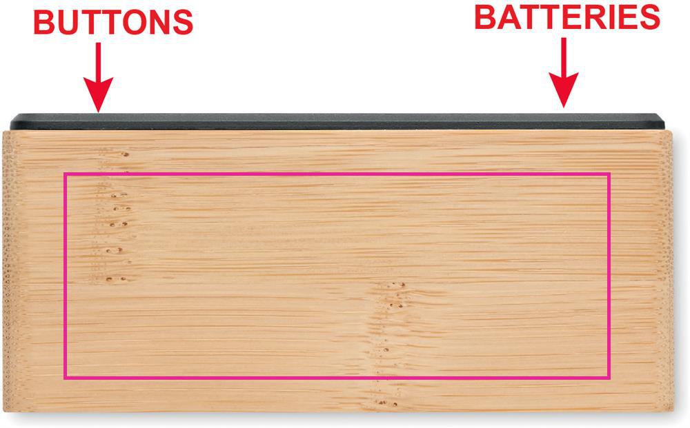 Wyświetlacz LED z budzikiem i wskaźnikiem temperatury w bambusowej obudowie. W zestawie adapter AC-DC. Bambus jest produktem naturalnym, mogą występować niewielkie różnice w kolorze i rozmiarze.
