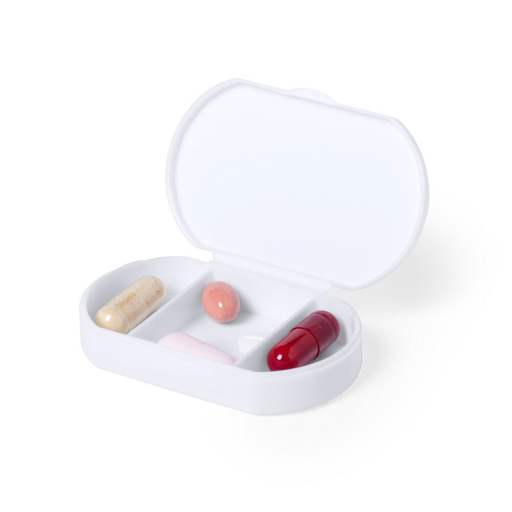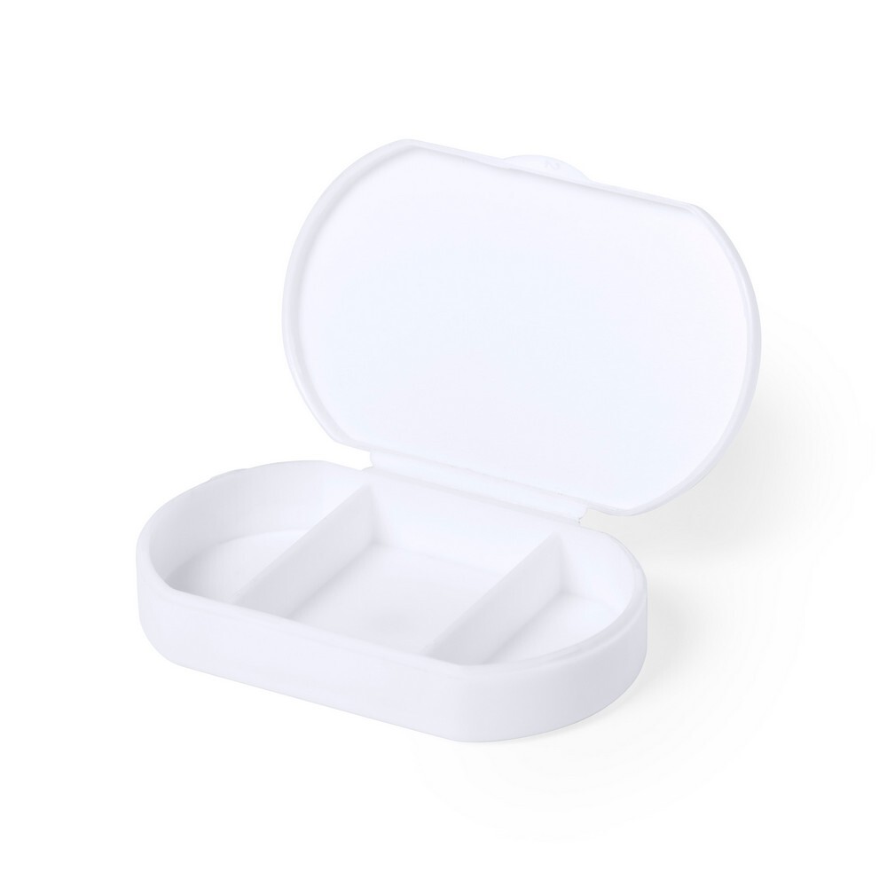 Antybakteryjny pojemnik na tabletki z 3 przegrodami, spełnia wymagania normy ISO 22196