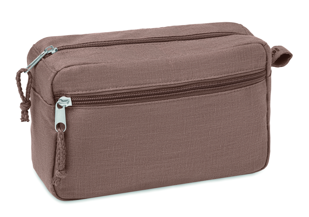 Kosmetyczka dostępna jest w 6 kolorach: brązowym, czarnym, granatowym, szarym, zielonym oraz beżowym. Kosmetyczka została wykonana z konopi.