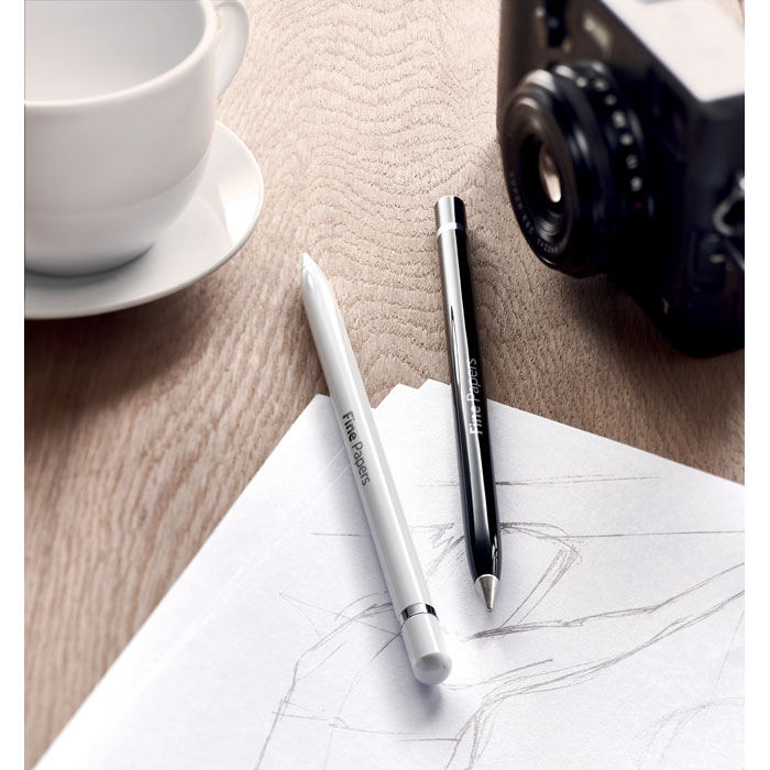- Specjalna metalowa końcówka umożliwiająca pisanie bez atramentu