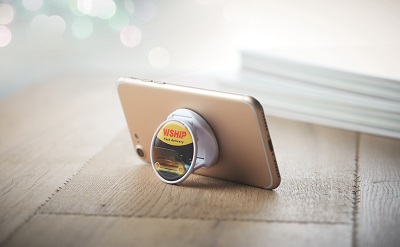 Doskonały gadżet do telefonu łączący w sobie dwie funkcje: podstawki i uchwytu. Przedmiot można oznakować na całej powierzchni metodą druku cyfrowego lub trwałą naklejką żywiczną pozwalającąuzyskać efekt 3D nadrukowanego obrazu.