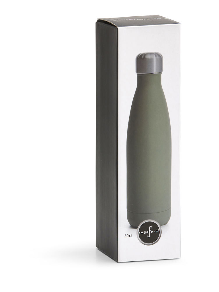 <p>Podwójne ścianki. Stal nierdzewna. Sagaform stworzyło swoją wersję tego niezwykle praktycznego gadżetu - butelka w której gorący napój utrzyma swoją temperaturę przez 12 godzin a zimny przez 24.</p> <p><br /> Wymiary: 50 cl, Ø 70 mm H 255 mm<br /> Opakowanie: Giftbox</p>