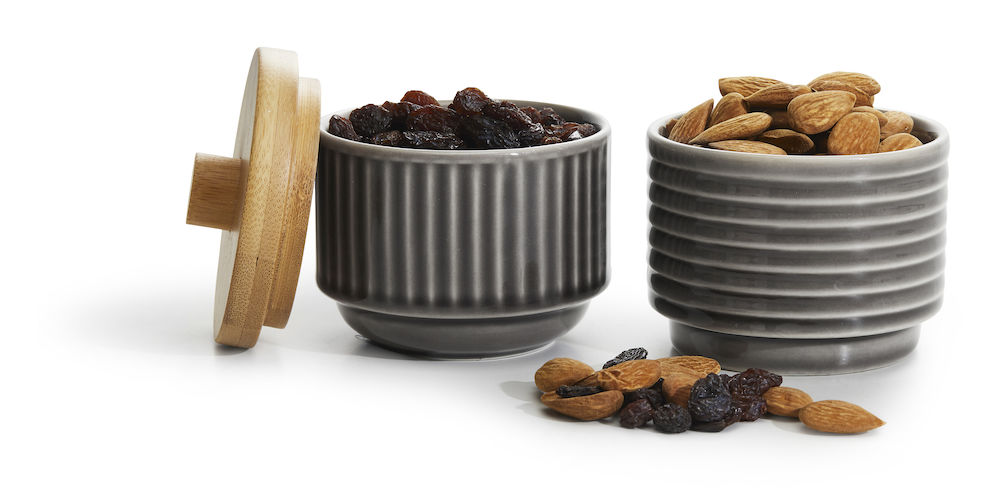 <p>Śliczne miseczki z bambusową pokrywką. Miseczki można składować jedną na drugiej oraz pasują do kubków do kawy i do latte z serii Coffee & More. Idealne do serwowania przekąsek.</p> <p><br /> Wymiary: H 60 mm Ø 80 mm<br /> Opakowanie: Box<br /> Materiał: Kamionka, bambus</p>