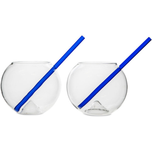 Szklanka ze słomką 2-PAK CLEAR/BLUE / BYON