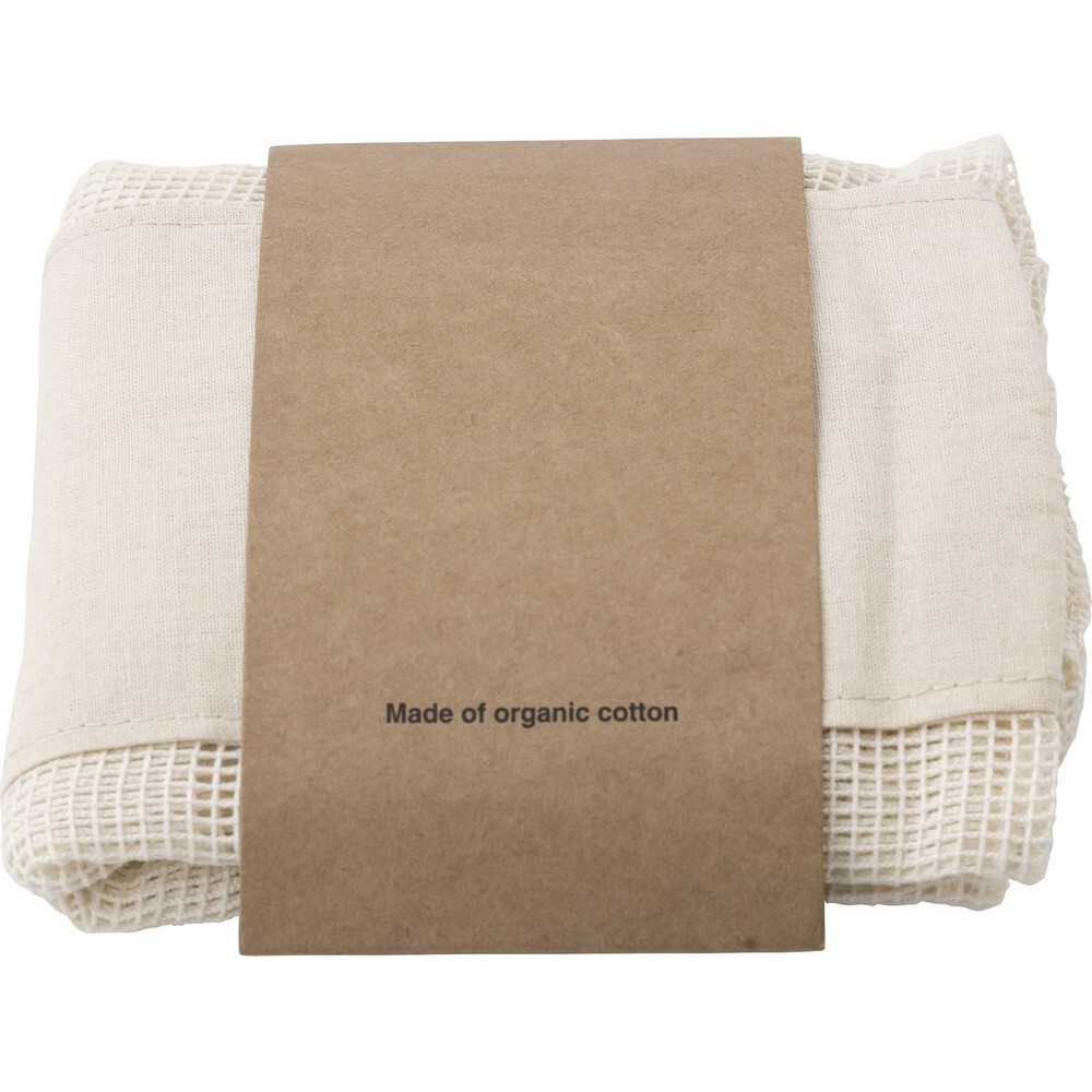 Zestaw woreczków na owoce i warzywa z bawełny organicznej, 3 szt. / Neutralny