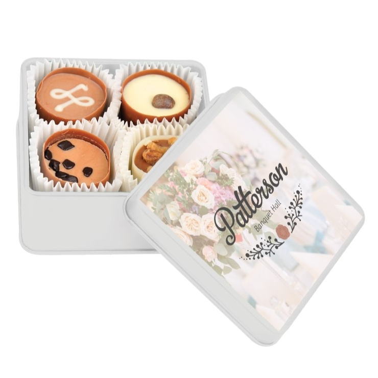 Doskonale dobrane 4 belgijskie praliny, zapakowane w elegancką puszkę. Masa netto produktu 48g.