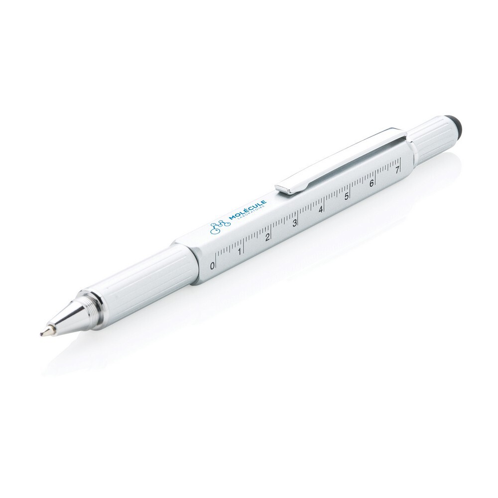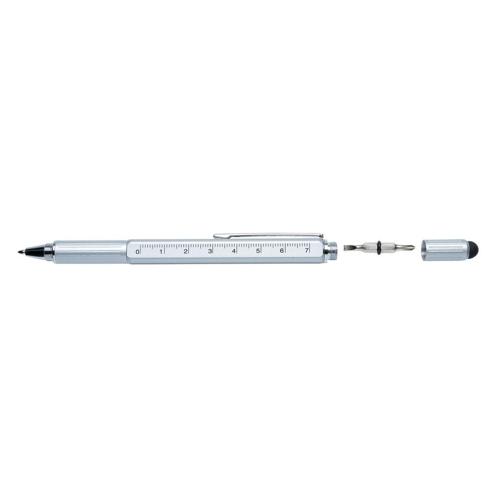 Długopis wielofunkcyjny, linijka, poziomica, śrubokręt, touch pen / Srebrny