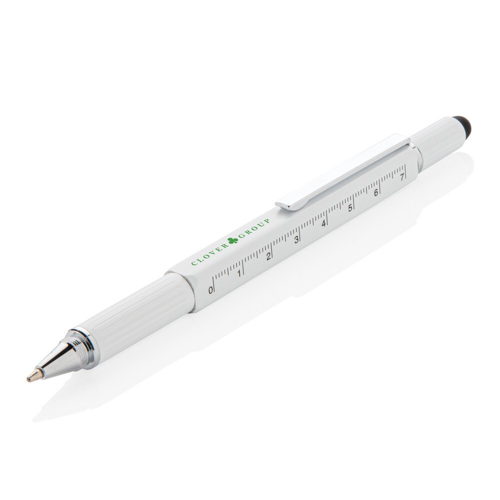 Długopis wielofunkcyjny, linijka, poziomica, śrubokręt, touch pen / Biały