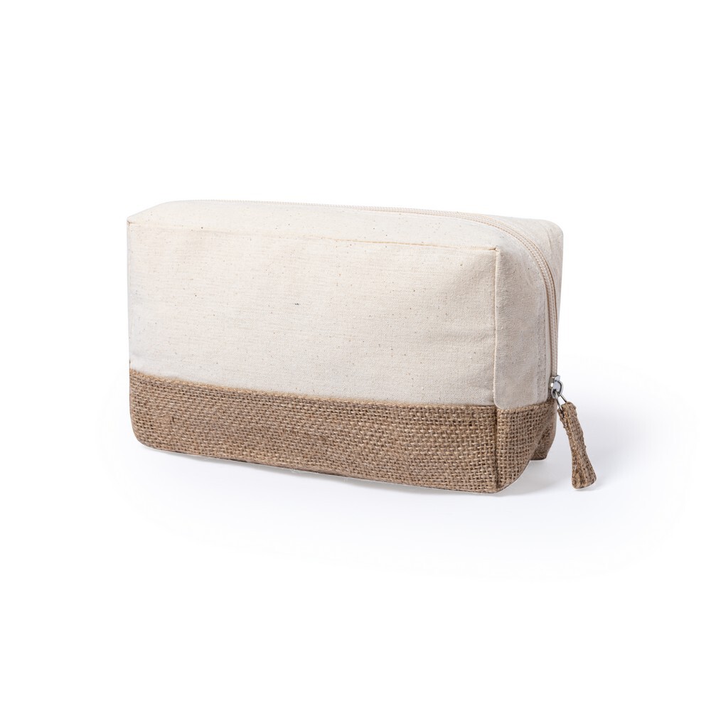 Bawełniana kosmetyczka z główną przegrodą na zamek błyskawiczny, detale z laminowanej juty