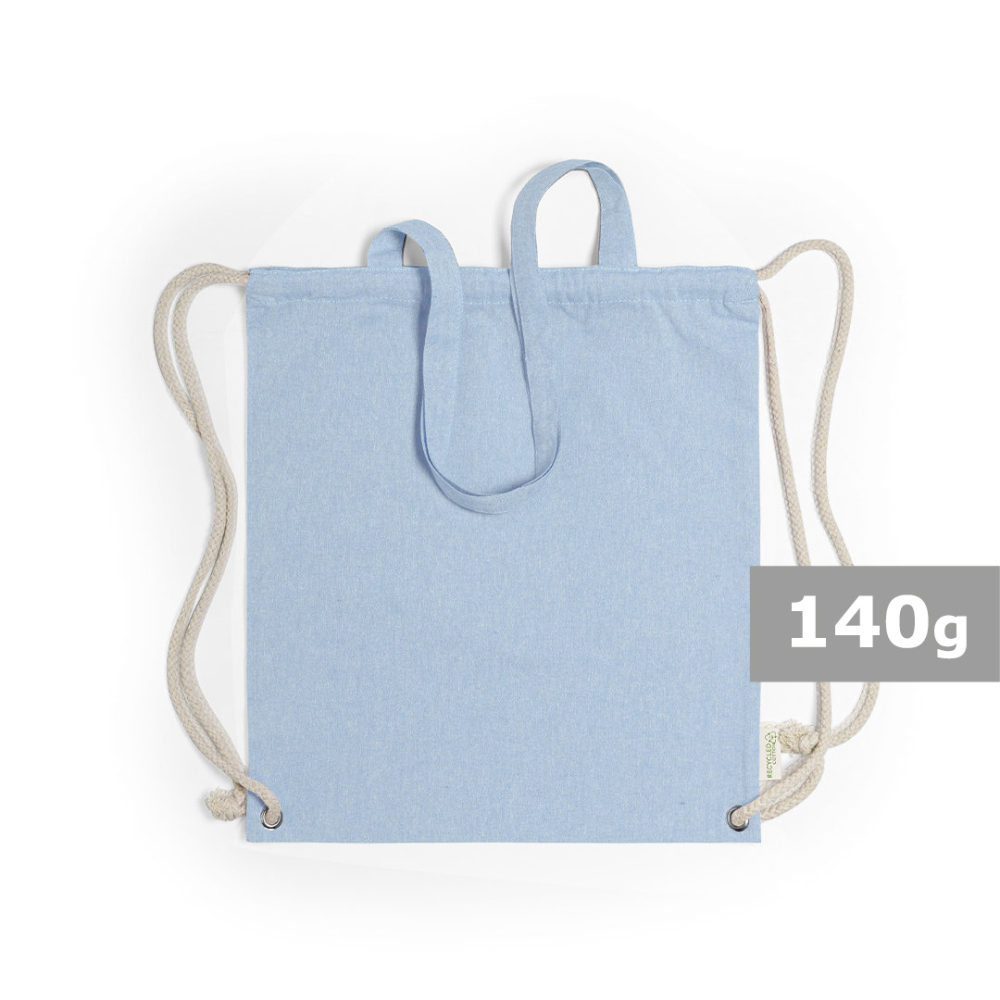Worek ze sznurkiem i torba na zakupy z bawełny z recyklingu, 2 w 1 | Gondulfo / Błękitny