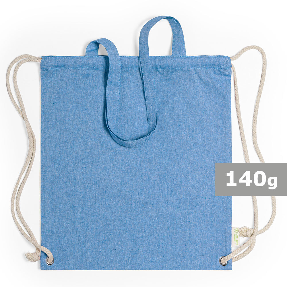Worek ze sznurkiem i torba na zakupy z bawełny z recyklingu, 2 w 1 | Gondulfo / Niebieski