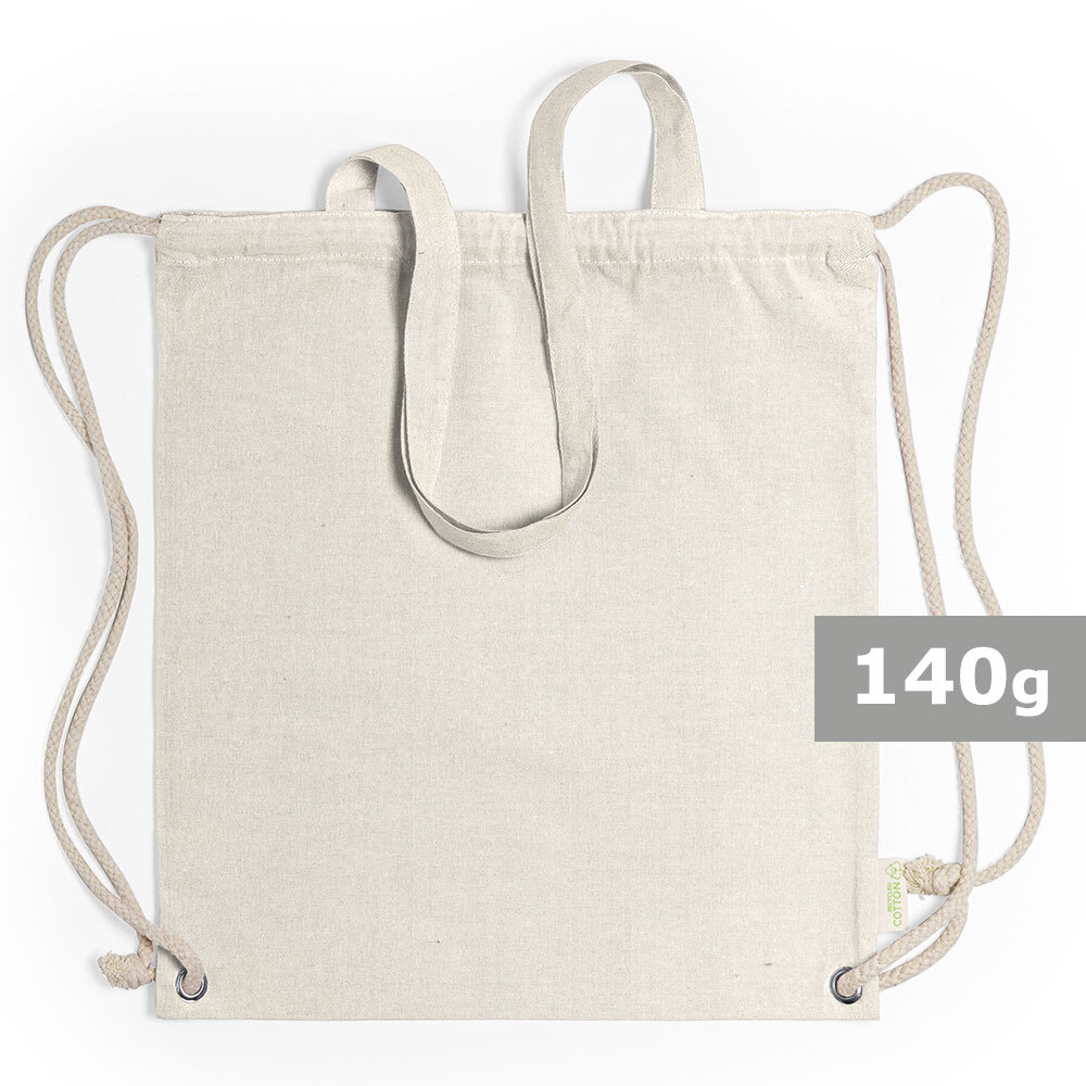 Worek ze sznurkiem i torba na zakupy z bawełny z recyklingu, 2 w 1 | Gondulfo / Beżowy