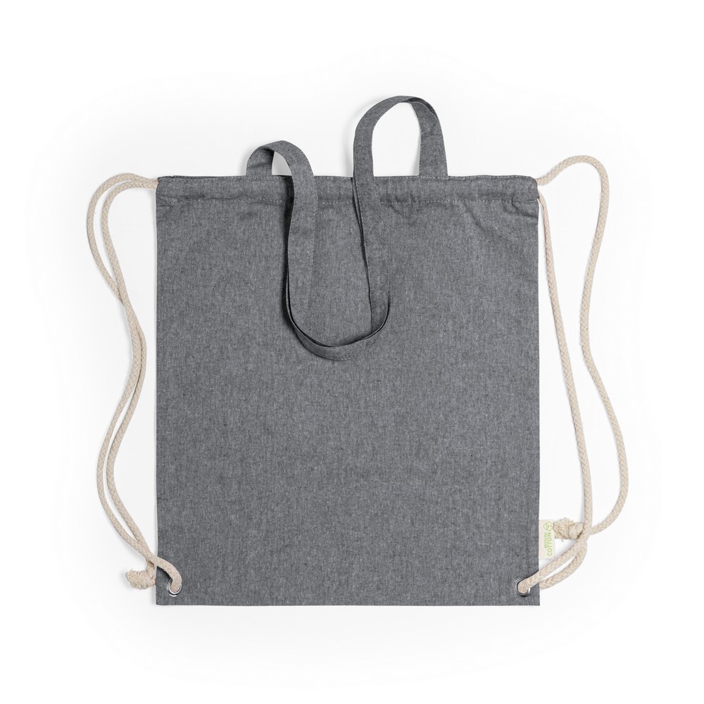 Worek ze sznurkiem i torba na zakupy z bawełny z recyklingu, 2 w 1 / Czarny