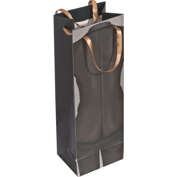 Torebka na prezent z ciekawym wzorem. Format torebki doskonale nadaje się do zapakowania butelki wina.