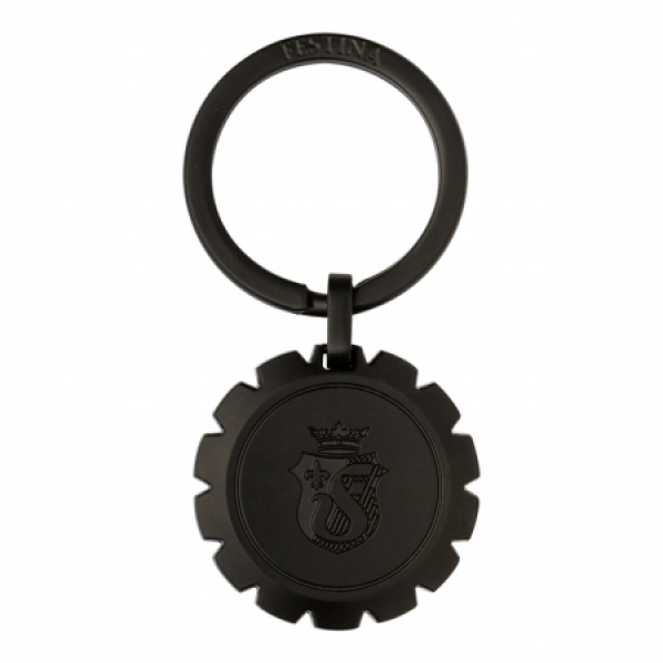 Czarno-matowy brelok do kluczy `Chronobike` jest inspirowany przyciskiem stopu kultowego zegarka chrono Chronobike. Posiada piękną dekorację w postaci festina blazon, precyzyjnie wygrawerowaną na powierzchni, co sprawia, że staje się modnym dodatkiem.