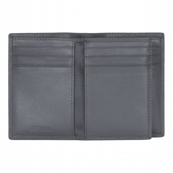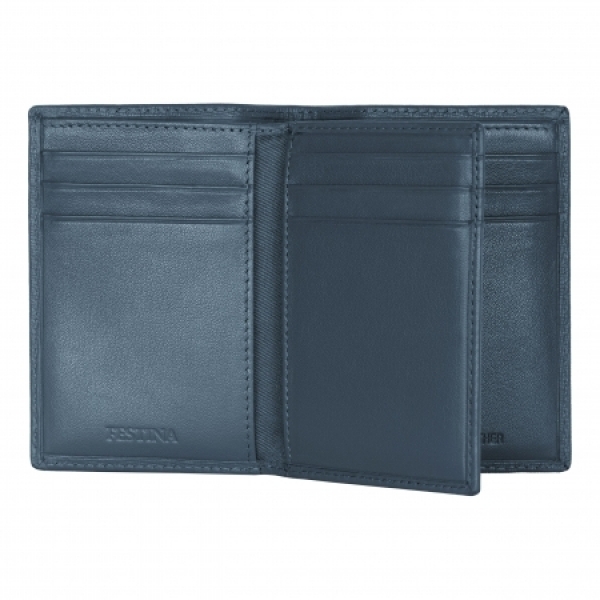 Linia drobnej galanterii skórzanej `Chronobike` jest wykonana z starannie dobranej, prawdziwej skóry, o fakturze safiano. Ta czarna wersja jest ozdobiona luksusowym chromowanym podpisem, dla uzyskania eleganckiego wyglądu. Ikona sygnatury, logo w kształcie trapezu F, zostało zredukowane do najmniejszej możliwej skali, aby nadać linii luksusowe wykończenie, jednocześnie pozwalając na optymalne wykorzystanie. Podkreśla go pięknie wytłoczone logo Festina. Uchwyt na karty jest minimalny, kompaktowy i bardzo praktyczny, z licznymi miejscami na karty i dwiema przegrodami na banknoty u góry. Wszystkie artykuły Festina są wyposażone w wyściółkę ochronną RFID.